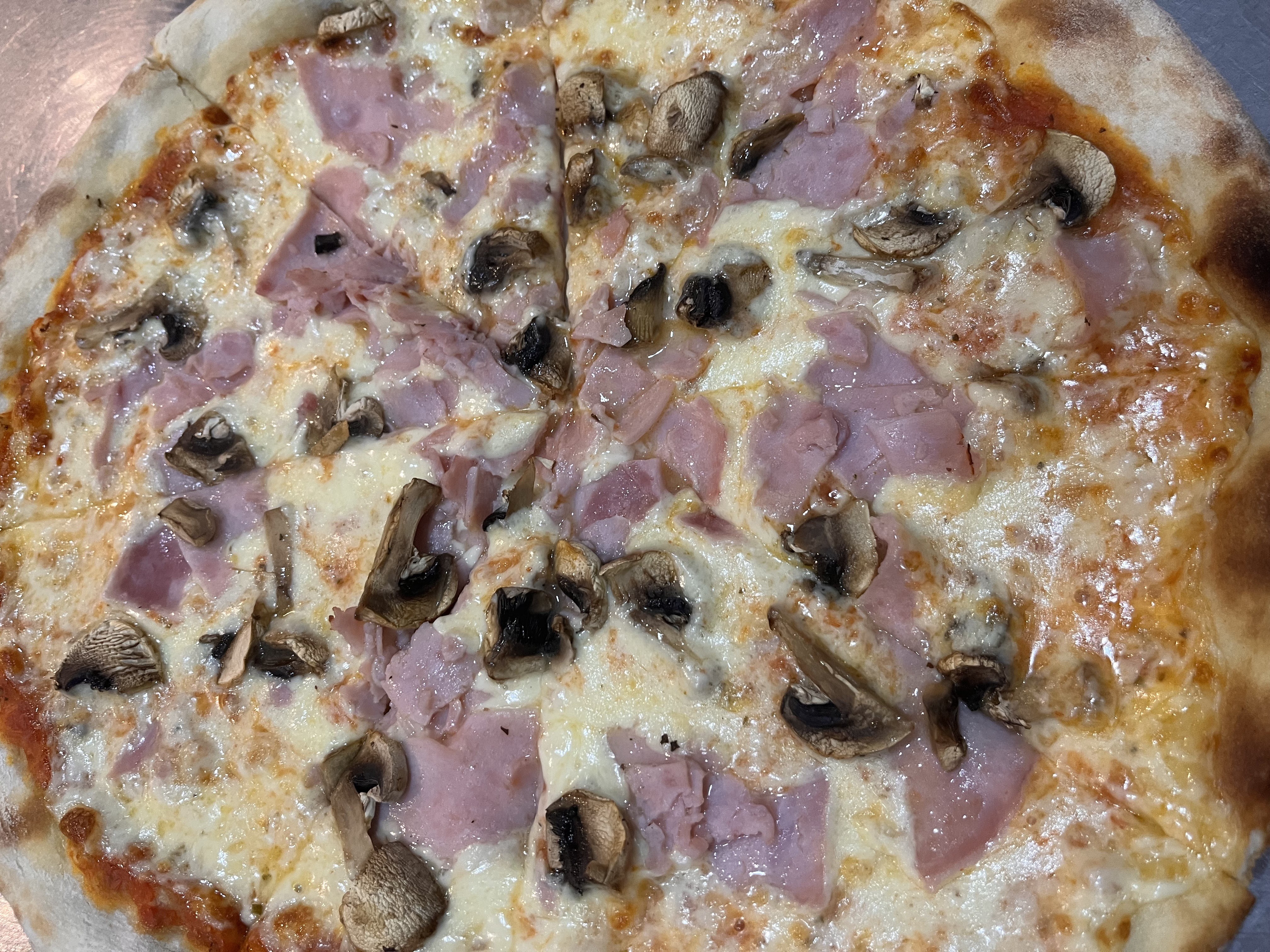 rajčatová omáčka, mozzarella, šunka, žampiony