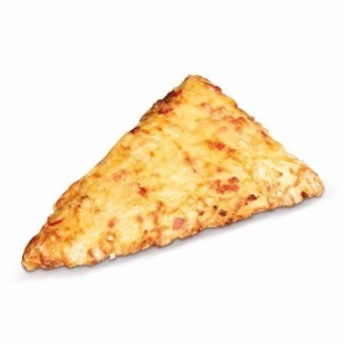 Pizza se slaninou, porce ve tvaru trojúhelníkové výseče, bez okraje