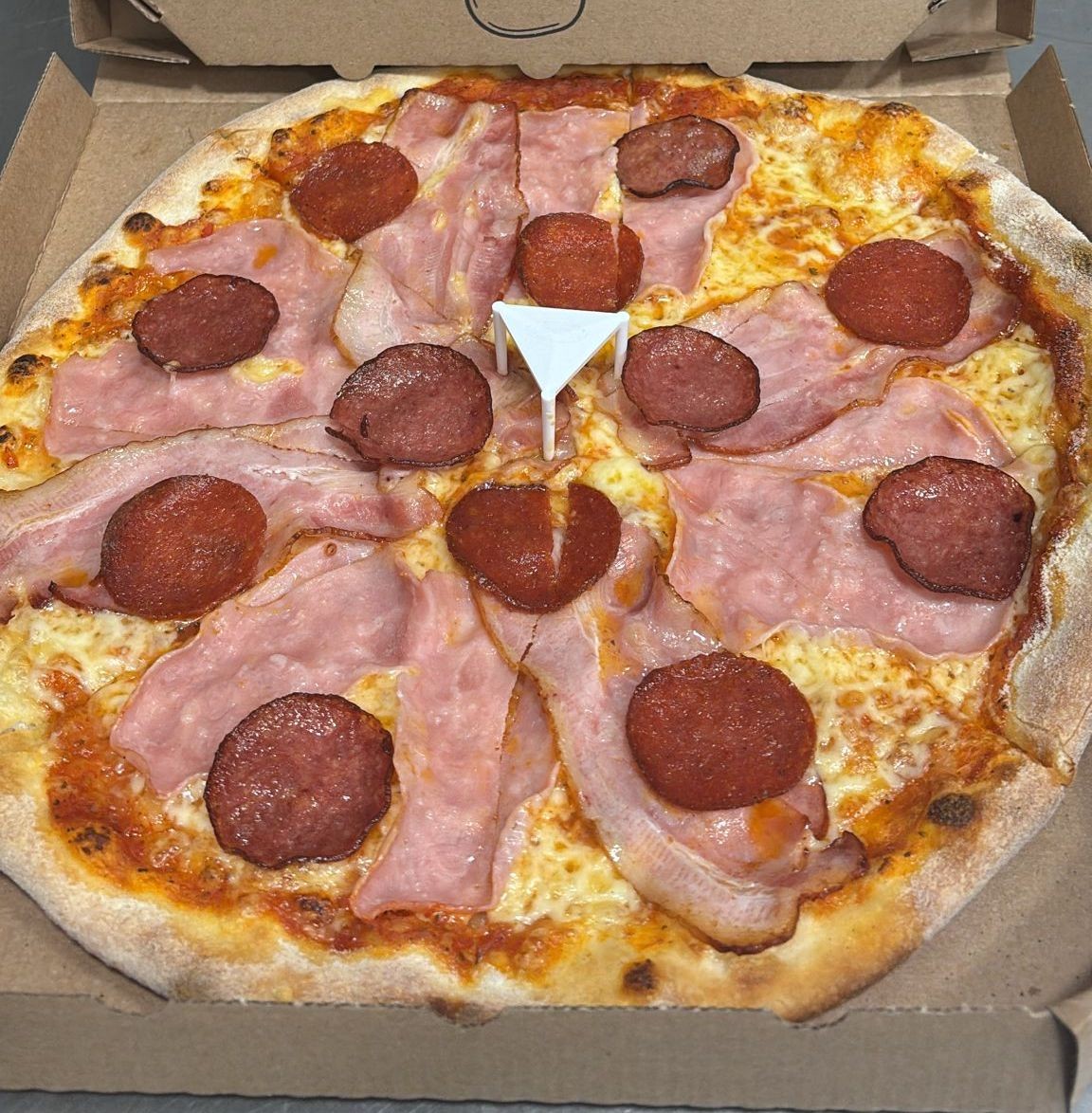 Rajčatový základ, gouda, šunka, vysočina, paprikový salám